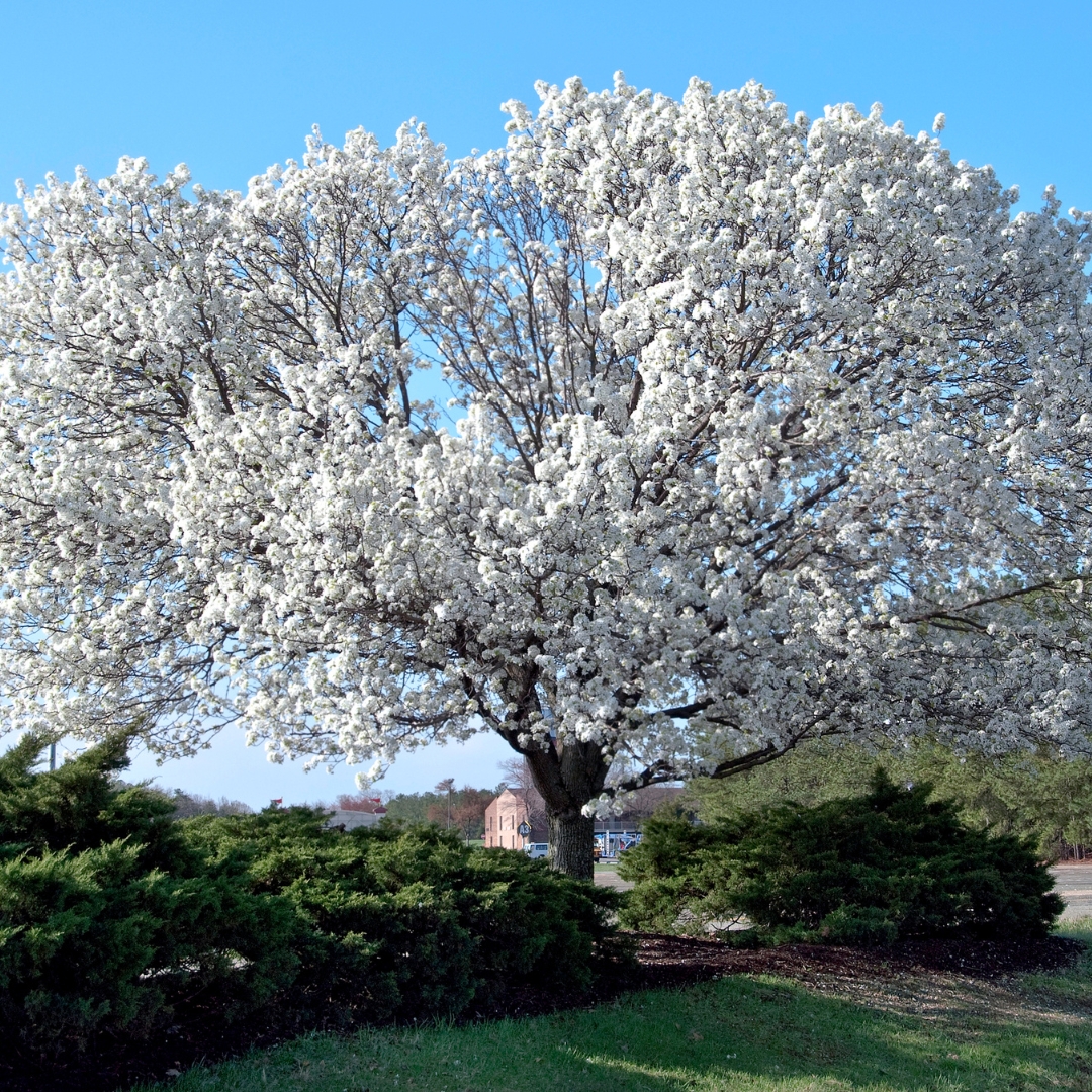 The Cleveland Select Pear is a wonderful early spring blooming tree that offers a beautiful display of large white flowers. Once it is finished blooming, its bright green foliage emerges. Its foliage will stay bright green until fall when its leave will turn warm autumn colors.