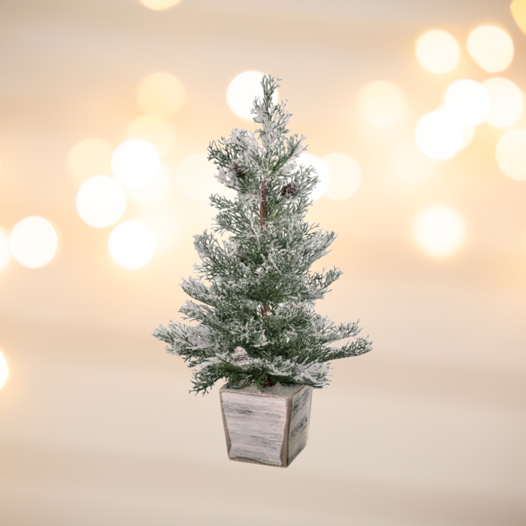 26″ Frosted Cedar In A Wood Planter Artificial Christmas Tree