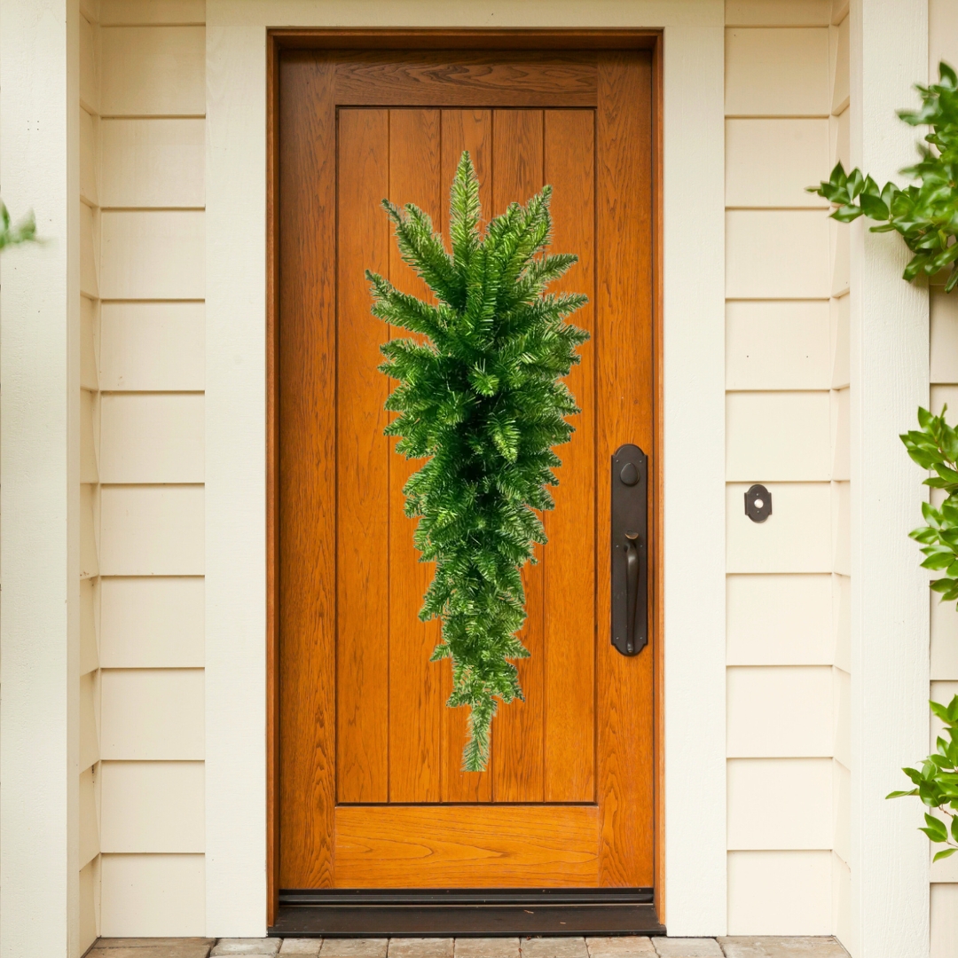 Perfect for indoor or covered outdoor use, this piece works beautifully as part of a layered holiday display. Pair it with matching wreaths, garlands, or other greenery accents for a cohesive festive look. The 46″ length gives it a generous presence without overwhelming your space, making it ideal for larger doors, porch posts, or entryways.