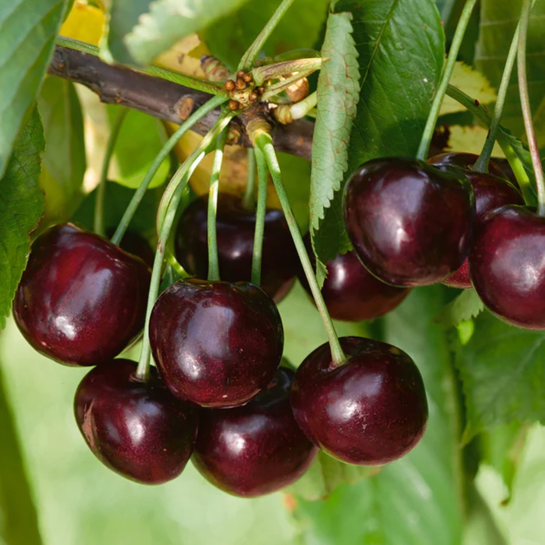 Prunus avium ‘Black York’Black York Sweet Cherry is a vigorous, productive sweet cherry variety valued for its deep-colored fruit, rich flavor, and strong performance in home orchards. Closely related to traditional heirloom black cherries, this cultivar is known for producing heavy crops of large, dark fruit with excellent sweetness and depth. Its classic cherry character, combined with attractive seasonal interest, makes it a reliable choice for gardeners seeking both beauty and abundant harvests.