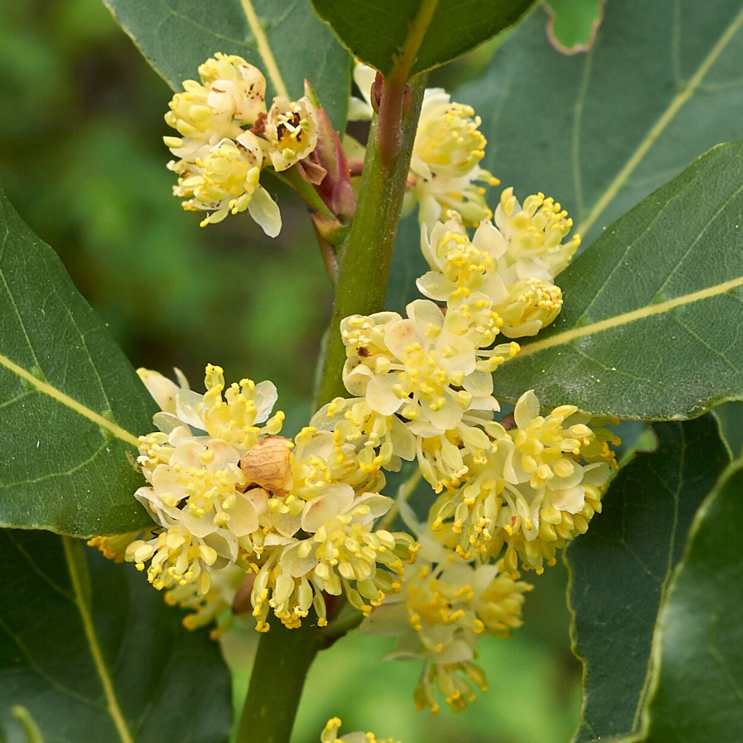 Laurus nobilis ‘Crestwood’Crestwood Bay Laurel is an elegant evergreen shrub or small tree known for its aromatic, glossy dark green leaves. Ideal for culinary use, these leaves can be harvested fresh or dried to enhance soups, stews, and sauces. Its dense, upright growth habit makes it an excellent choice for formal hedges, topiaries, or container plantings, bringing both fragrance and visual appeal to gardens or patios.