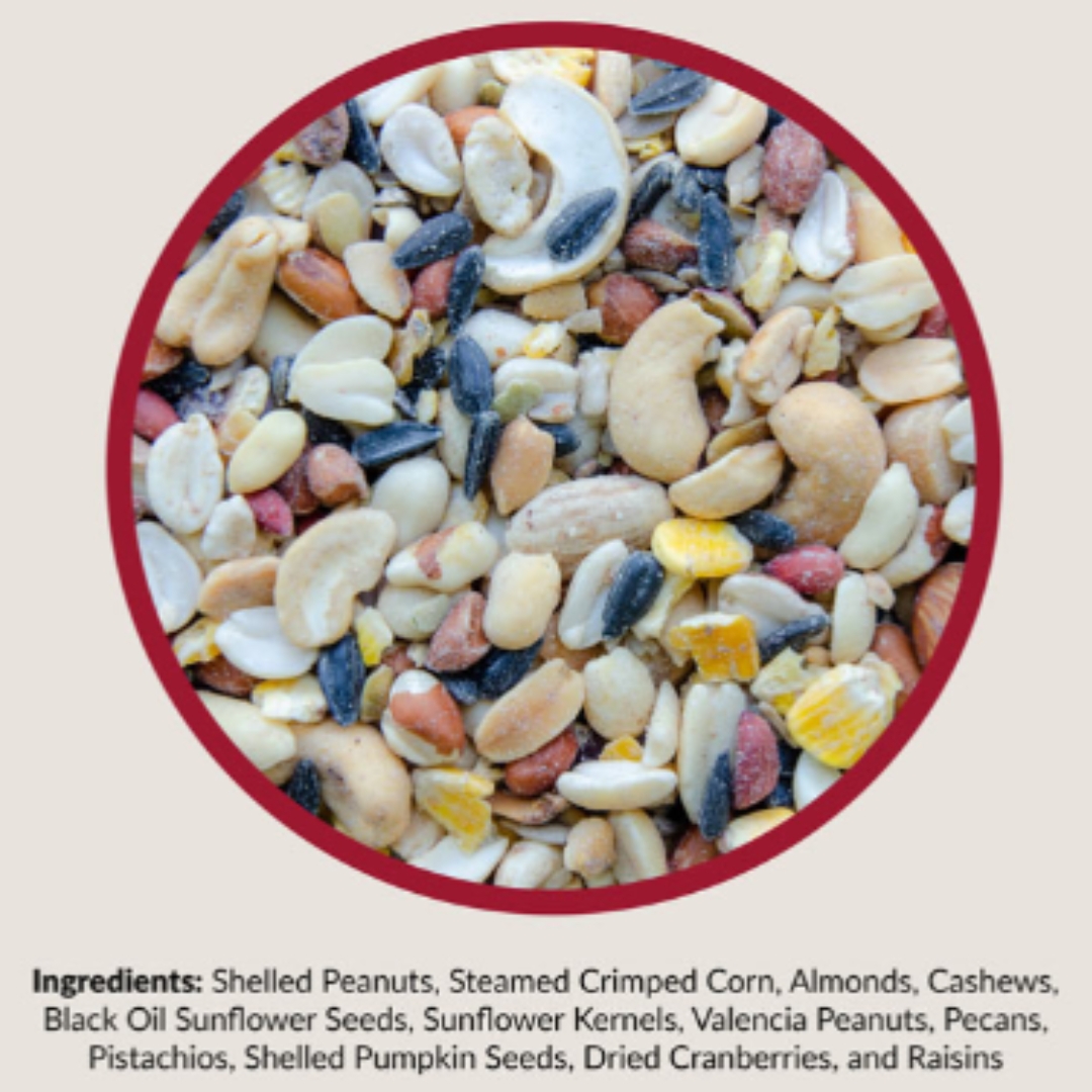 Designed to attract a wide variety of wild birds, this mix brings color and activity to garden feeders, tray feeders, hopper feeders, and tube feeders with large ports. The inclusion of fruits, nuts, and seeds appeals to both small and larger species, encouraging visits from chickadees, robins, orioles, blue jays, titmice, buntings, cardinals, grosbeaks, towhees, nuthatches, and many others.