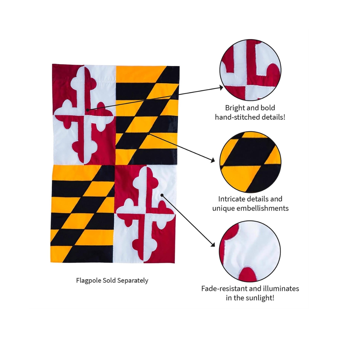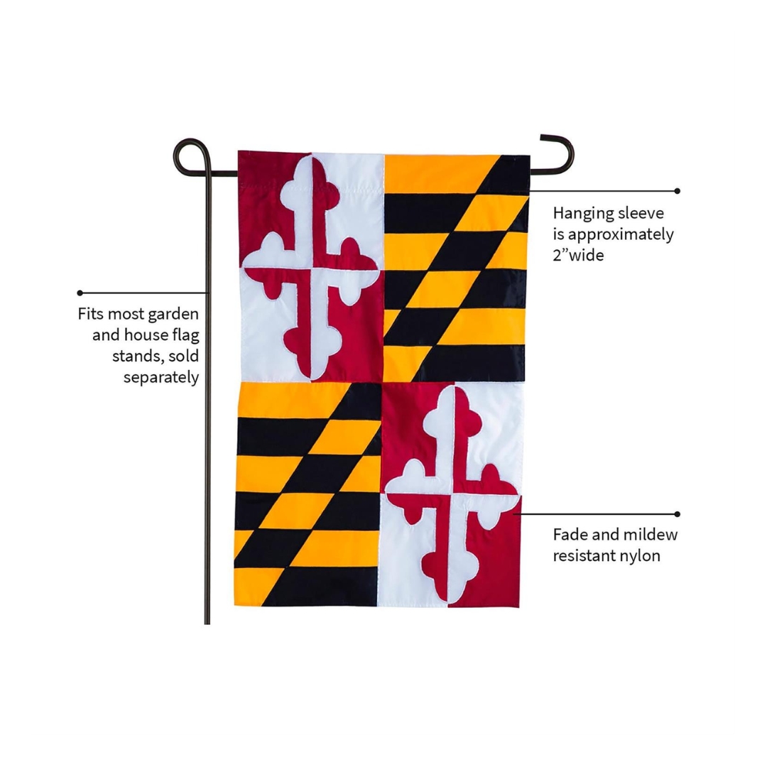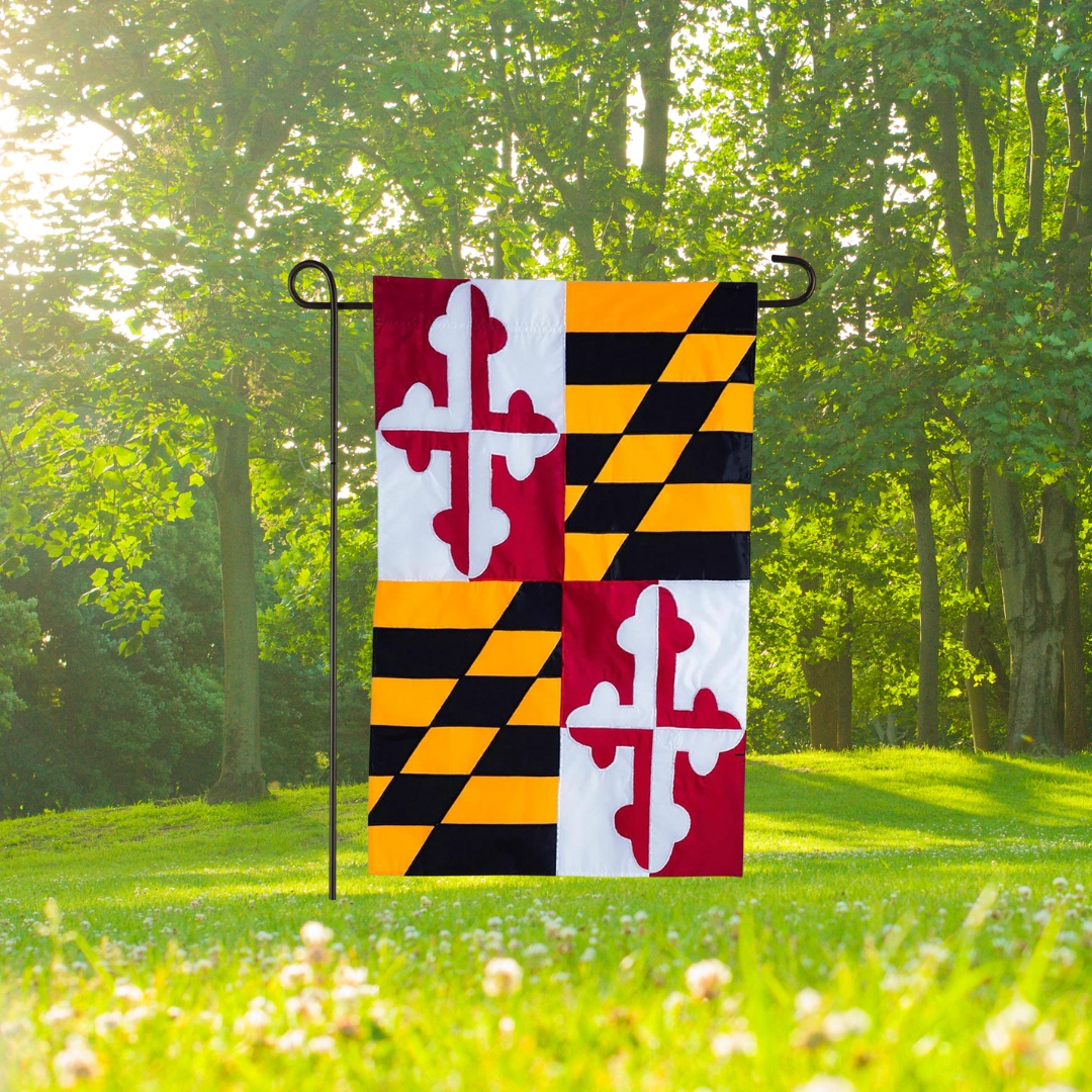 Celebrate state pride with the Maryland State Garden Flag, featuring the bold and distinctive Maryland flag design with its iconic gold and black stripes and red and white crosses. This garden-sized flag brings state pride to your outdoor décor, making it perfect for gardens, patios, porches, yard displays, or walkways. The visually striking design captures the essence of Maryland heritage while adding color and personality to exterior spaces.