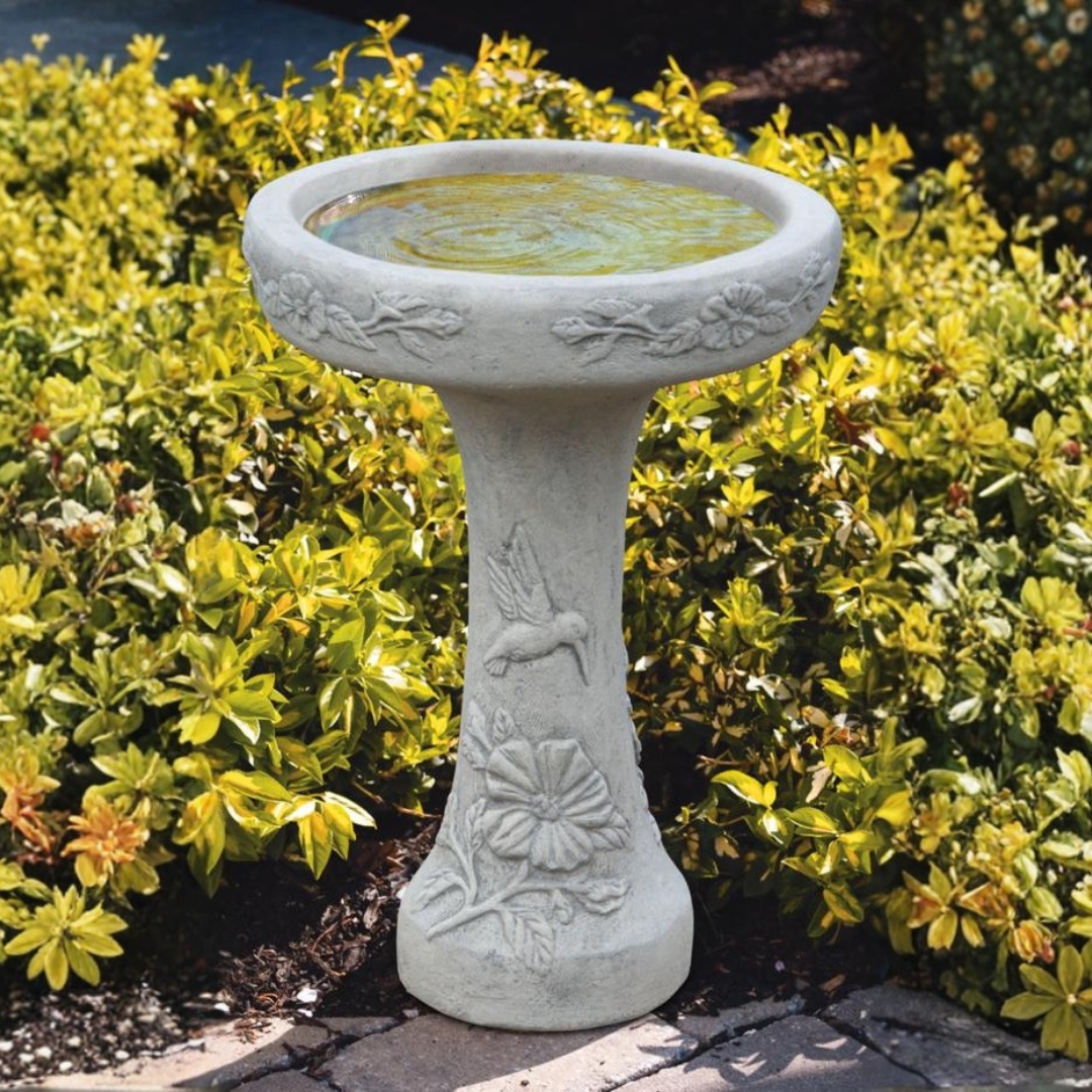The One Piece Hummingbird Bird Bath blends whimsical charm and functional design to create a standout presence in outdoor garden settings. Sculpted from rugged cast stone concrete as a single unified piece, this bird bath features a graceful hummingbird motif that evokes natural beauty while providing a welcoming water source for backyard birds. Its harmonious design brings gentle movement and visual interest to patios, landscaped beds, lawn areas, and outdoor living spaces, making it both a purposeful feature and a decorative focal point.