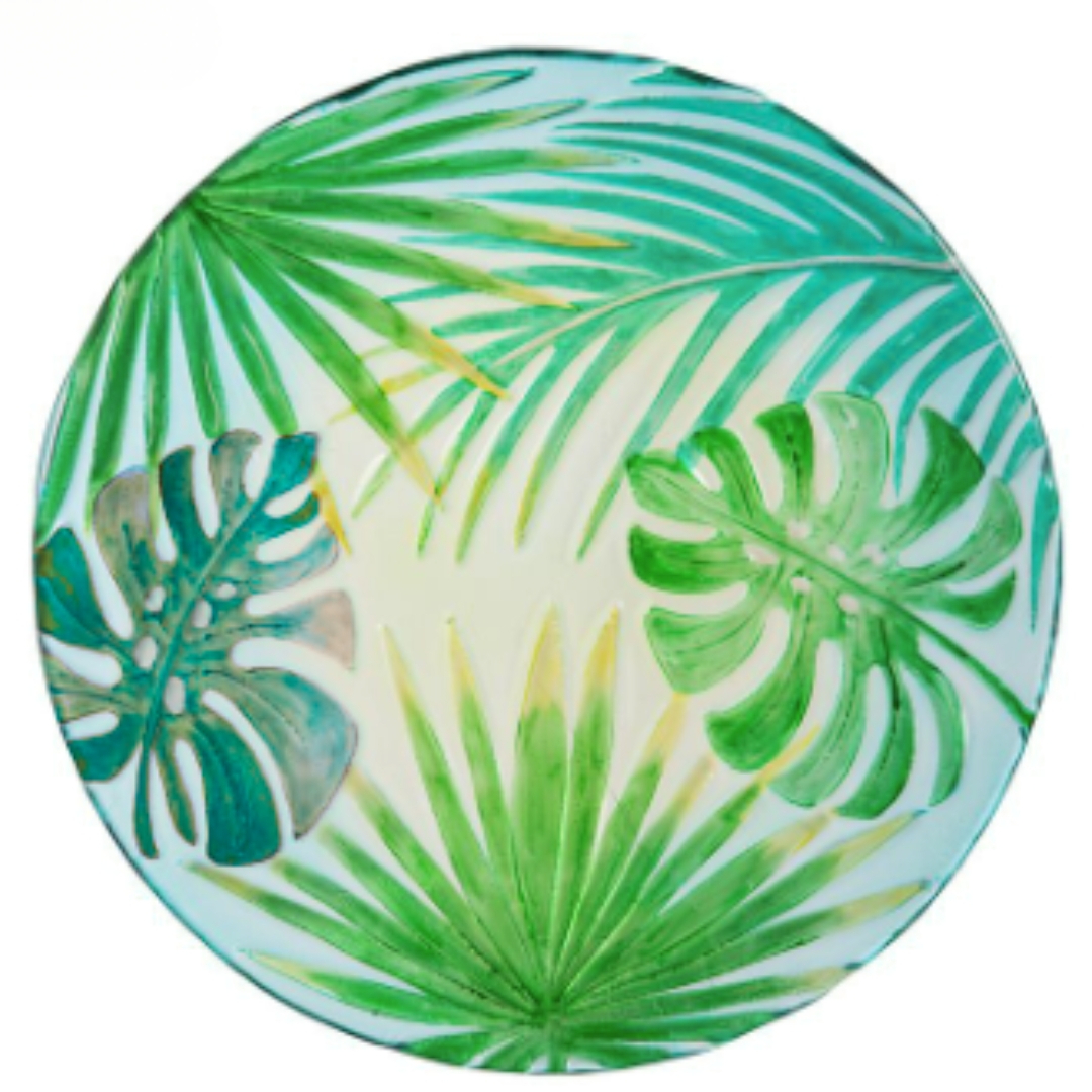 Bring vibrant island-inspired style to your outdoor space with the 18″ Palm Beach Tropical Leaf Bird Bath. Featuring a multicolored tropical leaf pattern, this striking glass bowl adds a splash of bold botanical design to patios, garden beds, or lawn settings while offering an inviting water source for birds and pollinators. Its decorative motif enhances tropical, coastal, or contemporary landscape themes and makes it a standout focal point for backyard décor.