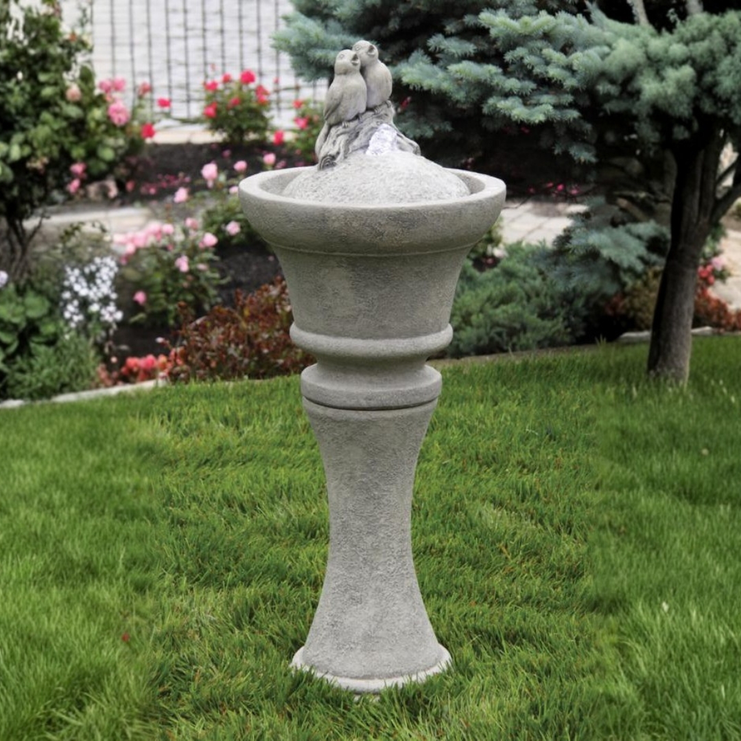 The Singing Birds Fountainette is a charming outdoor water feature that brings soothing movement and gentle sound to patios, gardens, courtyards, and yard spaces. Designed to combine ornamental style with a calming water element, this fountainette features sculptural bird accents that give personality and charm to your landscape while providing a relaxing focal point that enhances your outdoor living experience.