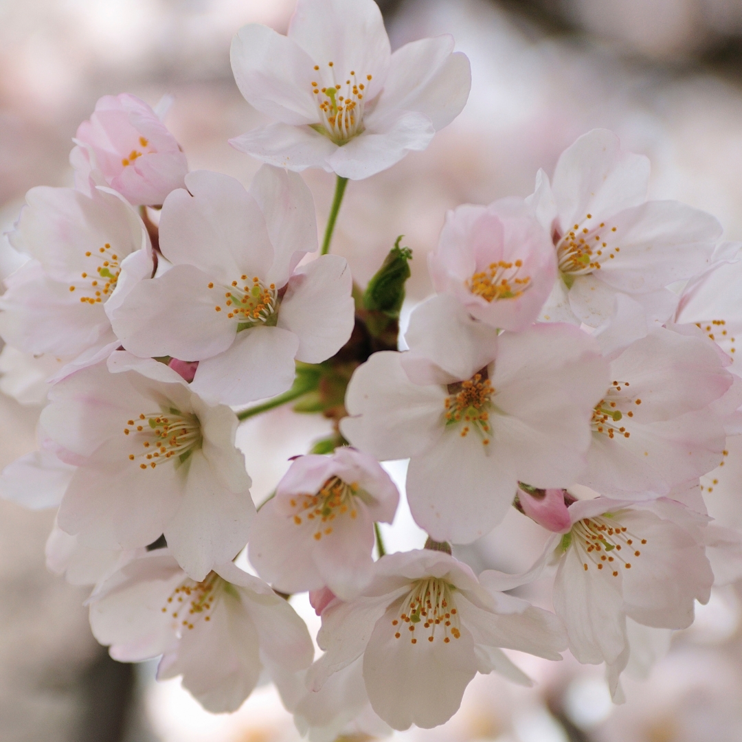 In early spring, Yoshino Cherry bursts into bloom with abundant clusters of lightly fragrant flowers that open in soft blush tones and mature to nearly pure white. The blossoms appear along bare branches, creating a cloud-like effect that signals the arrival of spring. This heavy bloom period typically lasts one to two weeks, depending on weather conditions, and attracts bees and other early pollinators seeking nectar.